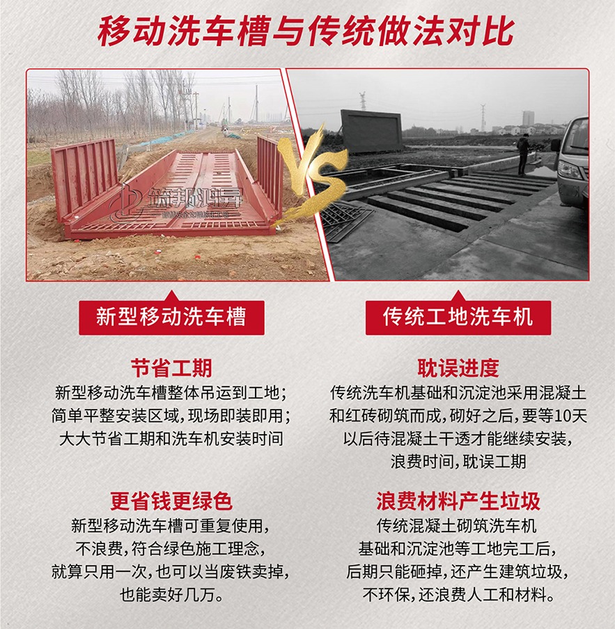 筑邦鴻昇新開發(fā)的移動(dòng)式多功能工地洗車槽由移動(dòng)多功能一體式洗車槽和工地洗車機(jī)組成,一體式洗車機(jī)采用整體設(shè)計(jì),整體吊運(yùn),用料厚實(shí)。替代了之前的負(fù)責(zé)的洗車機(jī)下面水泥基礎(chǔ),更加牢固方便,節(jié)省了大量的基礎(chǔ)砌筑人工和材料,還可以重復(fù)使用。