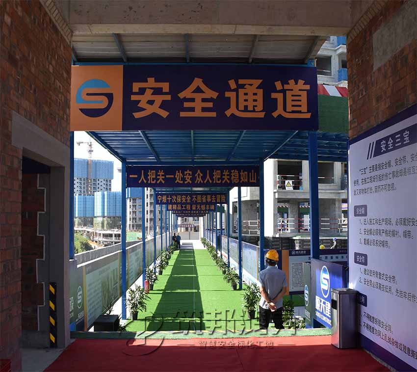 安全通道,施工現(xiàn)場實(shí)行人車分流,主要人員出入通道搭設(shè)了專用安全通道,安全通道兩側(cè)設(shè)置宣傳欄,提升施工作業(yè)人員的質(zhì)量意識、安全意識。