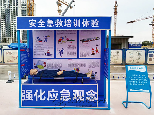 此次合作的安全教育培訓(xùn)體驗區(qū)建設(shè)包括了電焊機操作體驗、安全急救培訓(xùn)體驗、安全帶使用體驗、平衡木體驗、鋼絲繩使用體驗、欄桿推倒體驗、洞口墜落體驗、重物搬運體驗、綜合用電體驗、滅火器演示體驗、安全防護用品展示體驗、安全帽撞擊體驗等。筑邦安排專車送貨到廈門工地,同時安排了專業(yè)人手迅速到工地加班加點完成安裝。