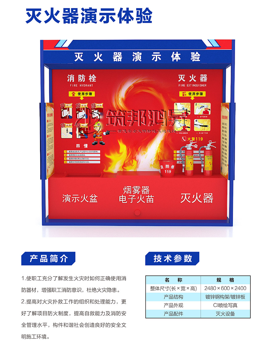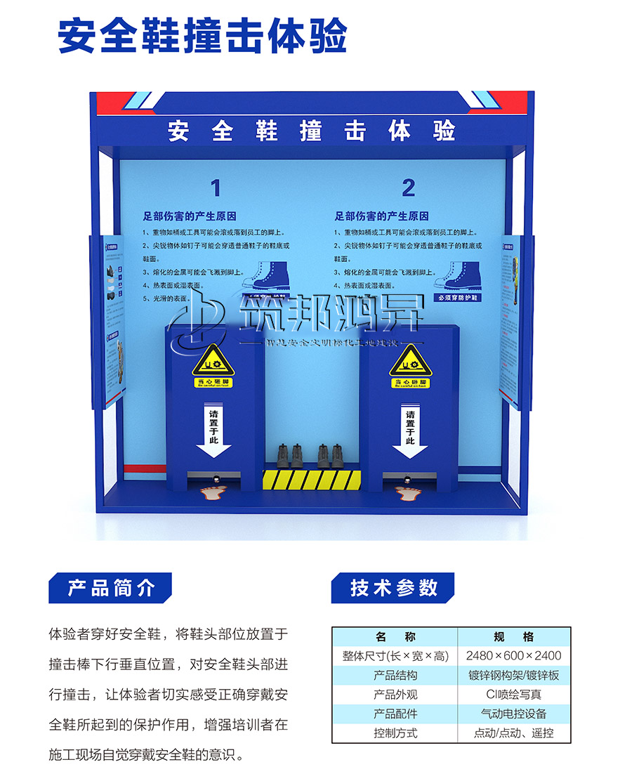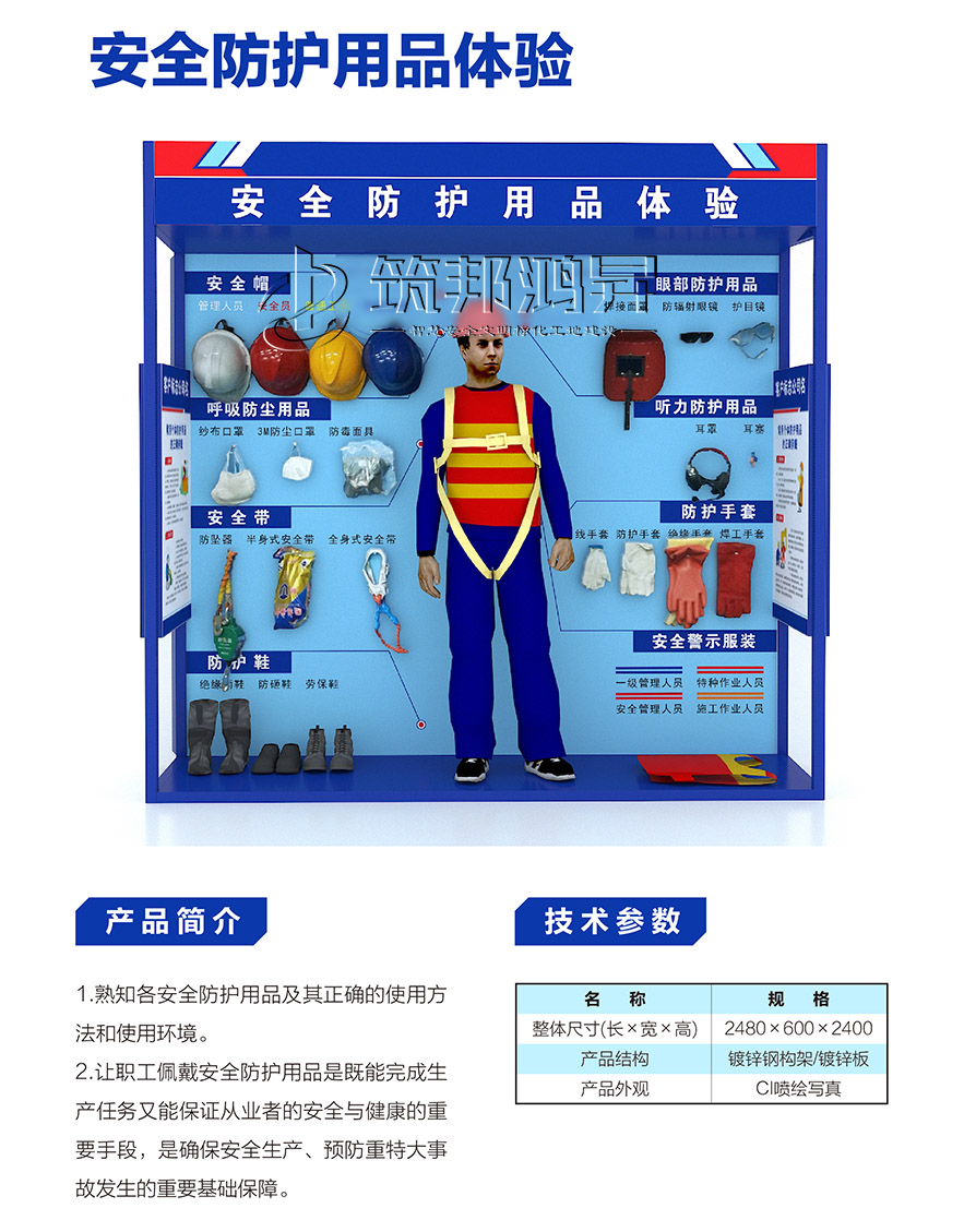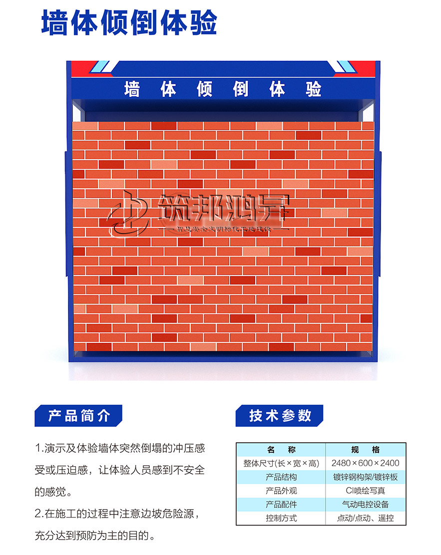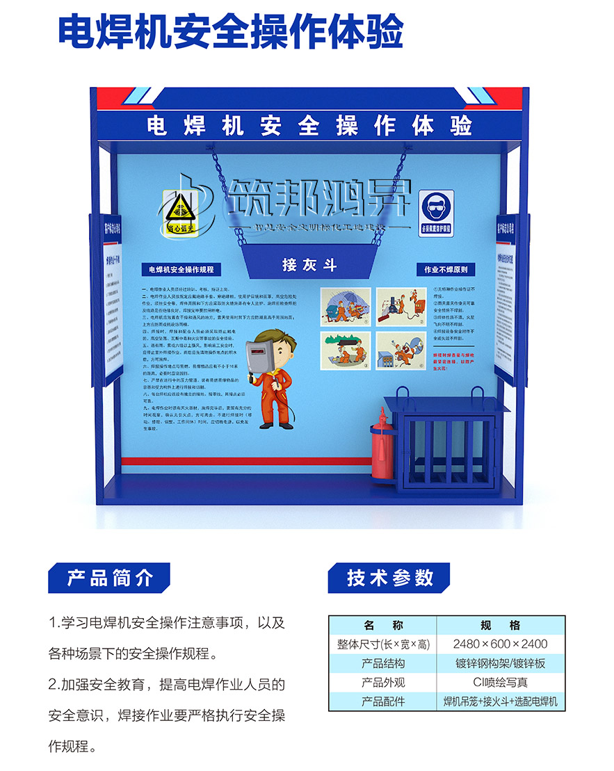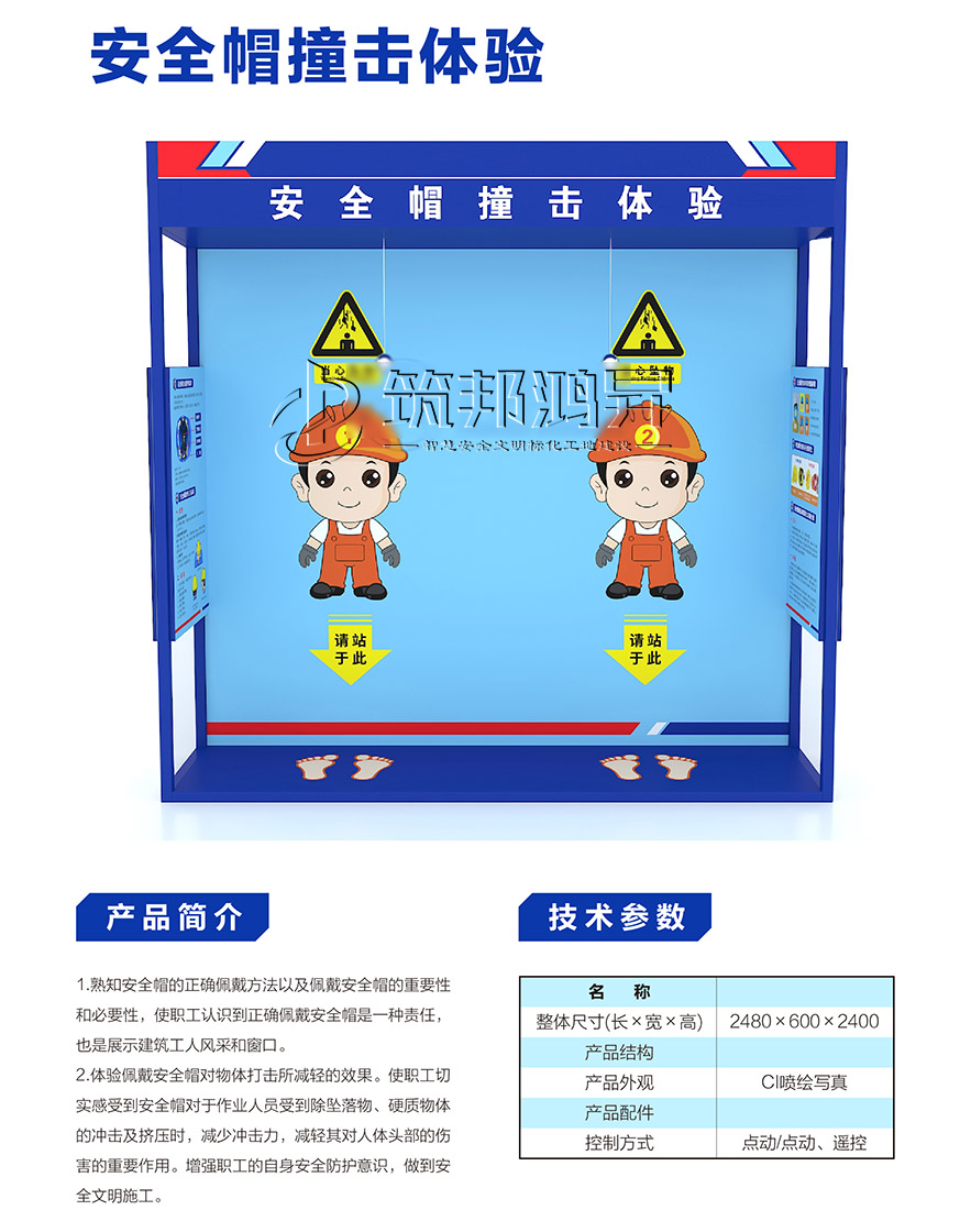 【筑邦鴻昇】安全體驗館內(nèi)一般配置安全帶使用體驗、洞口墜落體驗、消防器材演示體驗、安全帽撞擊體驗、綜合用電體驗、現(xiàn)場急救體驗、平衡木體驗、鋼絲繩使用體驗、安全防護(hù)用品展示培訓(xùn)、垂直爬梯演示體驗、鋼絲繩演示體驗、吊運體驗、欄桿推倒體驗、平衡橋/斜屋面行走體驗、機(jī)械傷害體驗、移動式平臺傾倒、電焊機(jī)操作體驗、重物 等搬運體驗、墻體傾倒體驗、人字梯體驗等幾十種體驗設(shè)施。這些基本涵蓋了建筑施工現(xiàn)場容易發(fā)生安全事故的危險源。