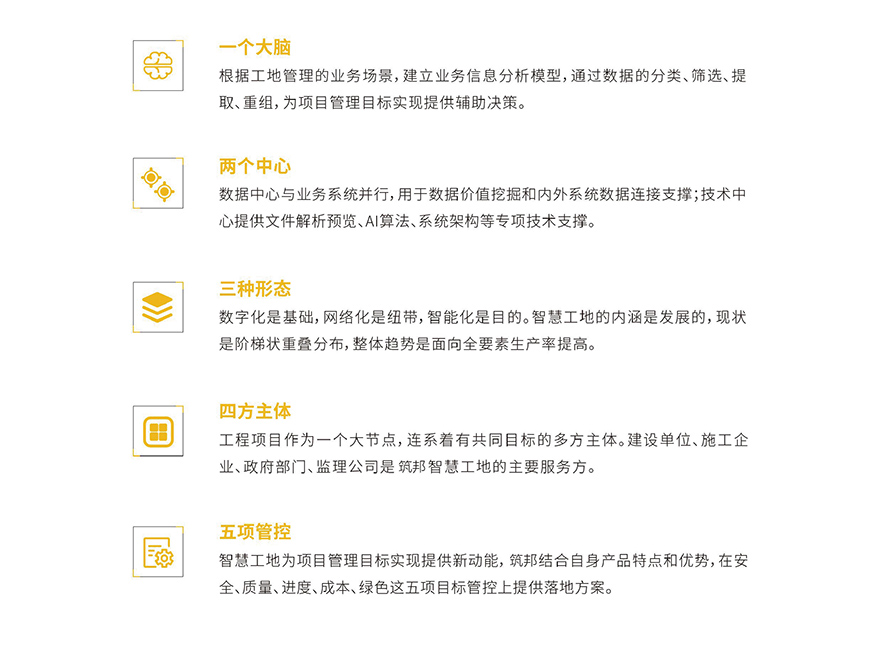 【筑邦鴻昇】智慧工地管理系統(tǒng)平臺圍繞工地現(xiàn)場人、機(jī)、料、法、環(huán)五大生產(chǎn)要素,綜合運用“BIM、AI、機(jī)器人、邊緣計算、無人機(jī)、5G、XR、區(qū)塊鏈”八大信息技術(shù),通過數(shù)字化、網(wǎng)絡(luò)化、智能化實現(xiàn)項目全局優(yōu)化,保障工程質(zhì)量、安全、進(jìn)度、成本等管理目標(biāo)的順利實現(xiàn),助力您的項目成為智慧文明安全工地,在省優(yōu)市優(yōu)文明工地評選中占據(jù)優(yōu)勢。